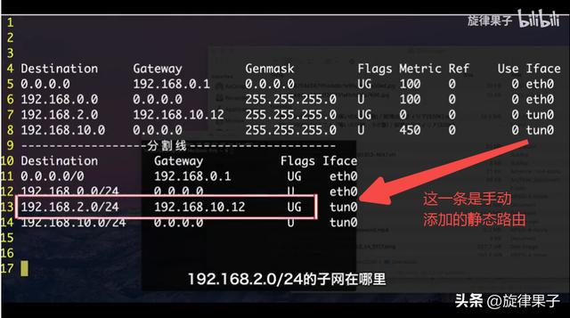 如果数据包的目的地是我的办公室的主机,IP地址为192.168.2.12,那么会同时符合两个目的网段,0.0.0.0/0和192.168.2.0/24,但是路由器会优先匹配更精确的规则,所以数据包通过tun0网卡转发给网关192.168.10.12。