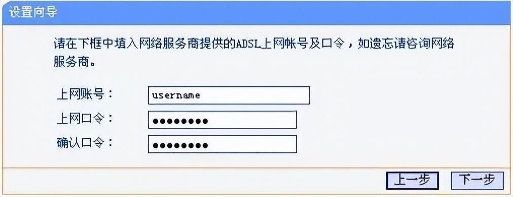 四.此例以常见的“PPPOE”为例,弹出输入“上网账号”和“上网口令”的界面,请根据宽带运营商提供的宽带账号和密码填入对应的输入框内,如下图示。