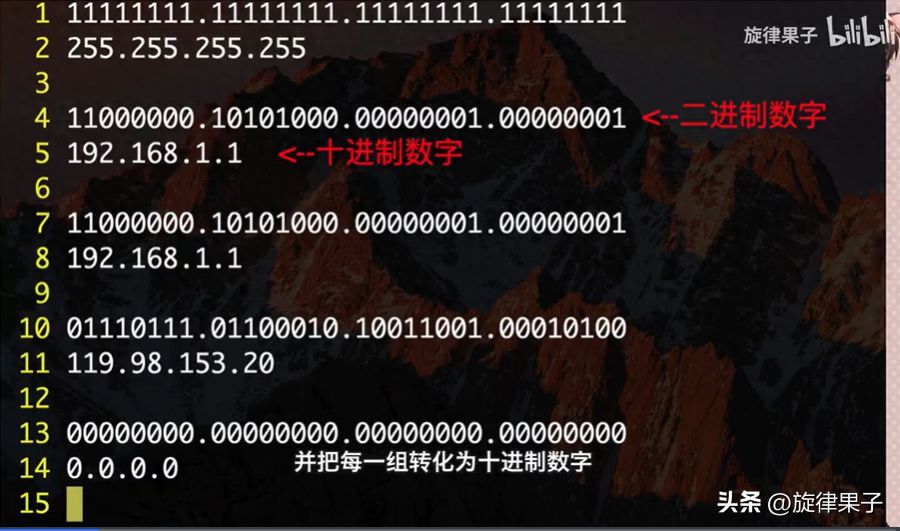 例如我们最熟悉最常用的192.168.1.1,其实代表的是这一串二进制数字,