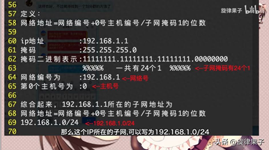 比如255.255.255.0这个子网掩码,前24位全都是1,后8位是0。则192.168.1为网络编号,最后的1为主机编号。