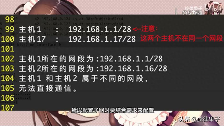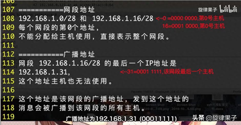 如192.168.1.17/28(00010001)这个主机地址所在的网段为192.168.1.16/28(00010000),广播地址为192.168.1.31 (00011111)。我们常用的192.168.1.1/24,所在的子网地址是192.168.1.0/24,广播地址为192.168.1.255(11111111)。