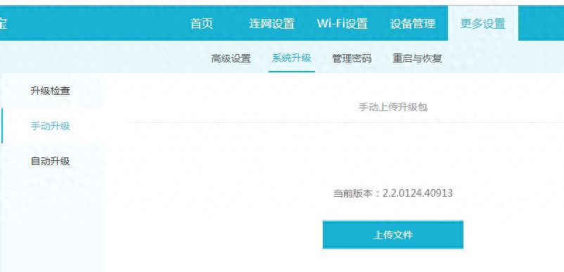 2、打开路由器管理页面。浏览器中输入192.168.11.1 回车进入路由器管理页面,点击更多设置,系统升级,手动升级。