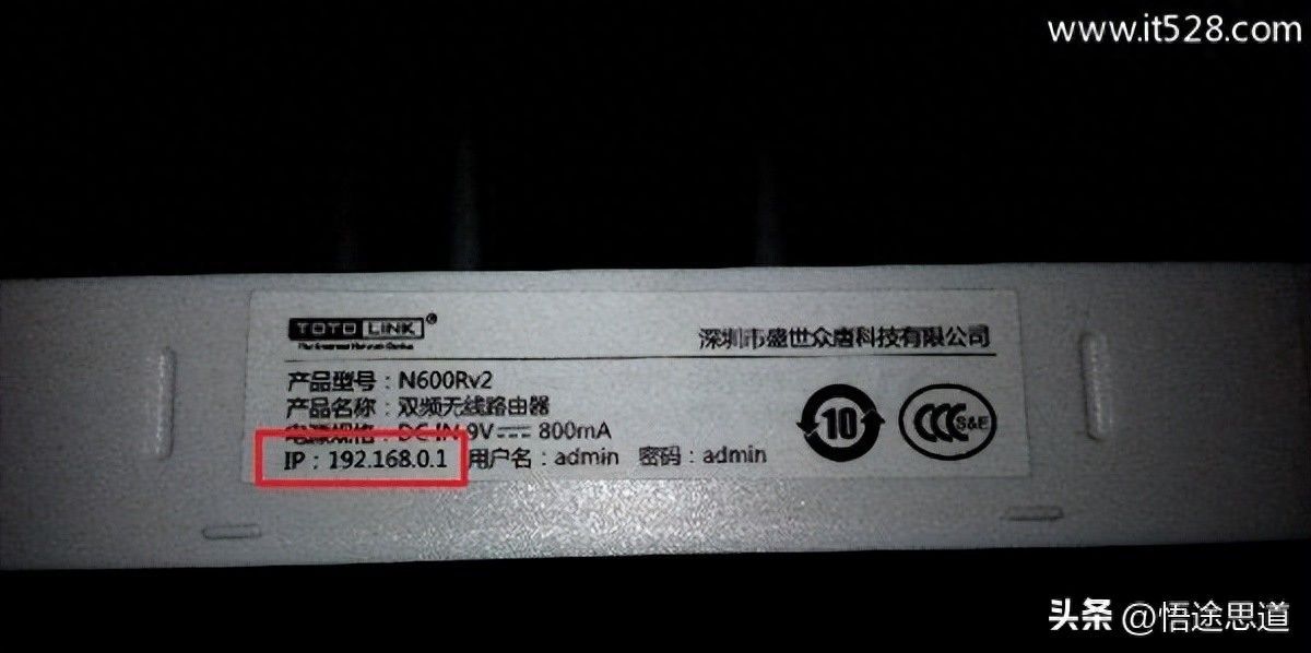TOTOLINK路由器的WiFi设置网址,其实就是管理页面的登录IP地址,这个地址大家可以在TOTOLINK路由器底部或者侧边中的铭牌中查看到,如下图所示,IP地址是:192.168.0.1,也就是说WiFi设置网址是:192.168.0.1