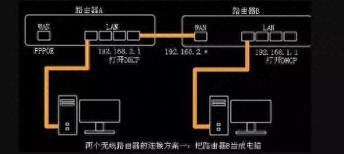 通常主路由器A的IP:192.168.1.1,那么路由器B就设为192.168.1.2;
