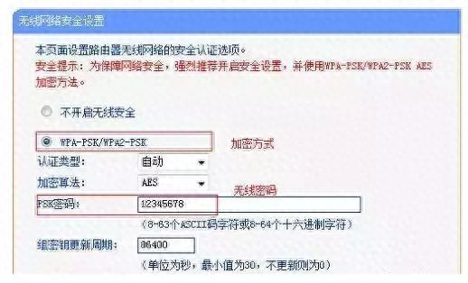 (2)再进入无线安全设置:如下图设置加密方式和密码:并记录下来一会儿设置第二台会用到。