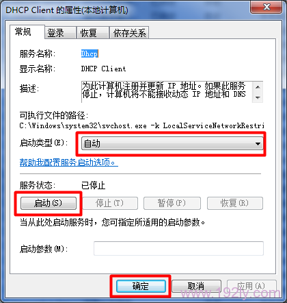 如果不是,请双击“DHCP Client”,在弹出的界面中,“启动类型”选择:启用——>“服务状态”下点击:启用——>点击“确定”。