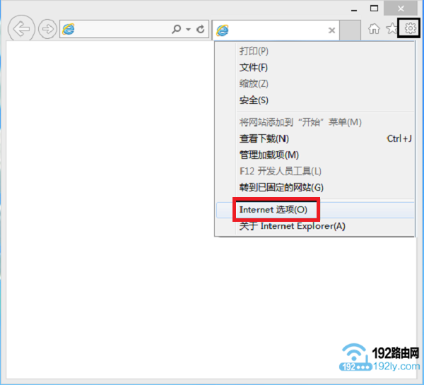 1、打开电脑上的IE浏览器,点击“设置”——>“Internet选项”打开
