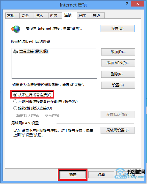 答:这个问题,一般是电脑连接路由器上网时才会出现,解决办法是在IE浏览器的“Internet”选项中,设置从不使用“宽带连接”拨号就可以了。具体的设置方法,下面进行详细介绍。