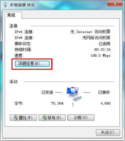 点击“详细信息”之后,就可以查看到这台Win10电脑中的IP地址信息了,如下图所示。