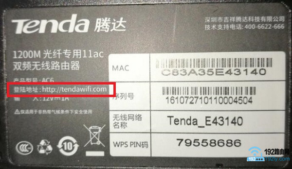 一般在路由器的底部或者其它位置,有一个标签;这个标签中,会给出这台路由器的设置网址信息,如下图所示。我这台腾达路由器的设置网址是:tendawifi.com