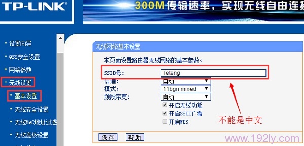 进入无线路由器的设置界面,在“无线设置”——>“基本设置”——>修改“SSID号”(“SSID号”就是无线WiFi的名称)