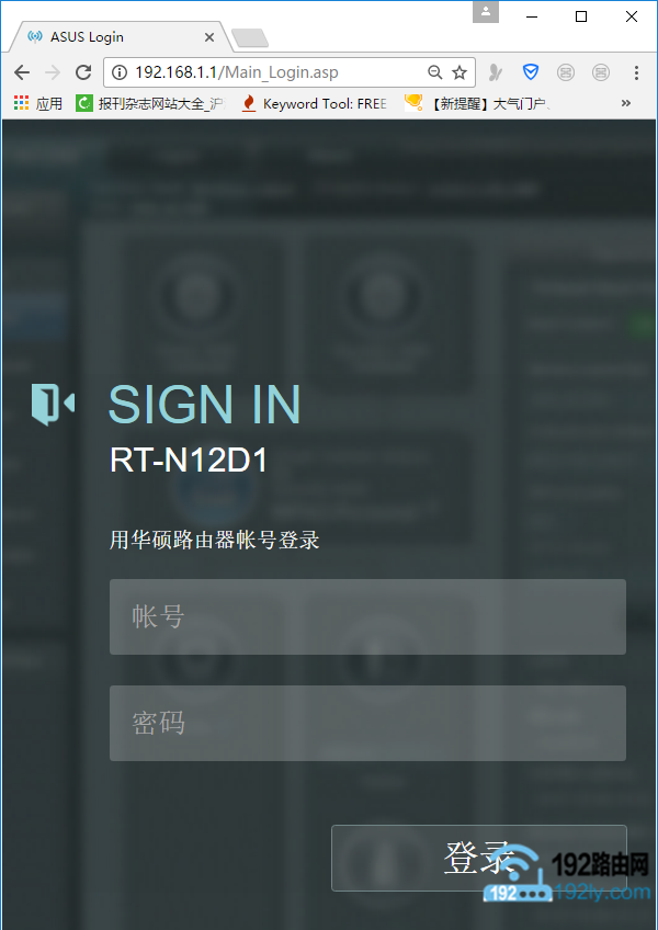 1、重新在浏览器中输入192.168.1.1 或者 router.asus.com——>输入用户名、密码,登录到这台华硕路由器的设置页面。