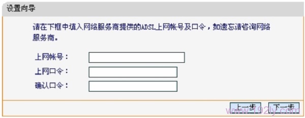 “上网帐号”填写:宽带账号——>“上网口令”填写:宽带密码——>“下一步”。
