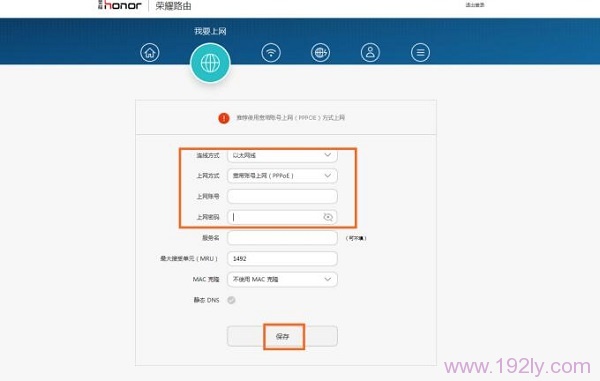 注意:“上网账号”、“上网密码”就是宽带运营商提供的 宽带账号、宽带密码;并且一定要填写正确,否则是不能上网的。