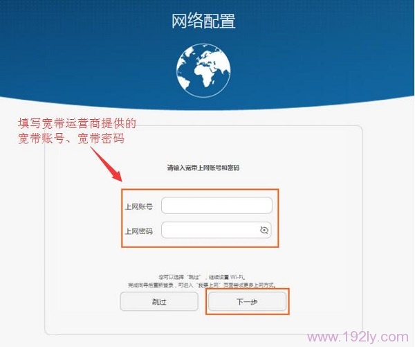 注意:“上网账号”、“上网密码”就是宽带运营商提供的 宽带账号、宽带密码;并且一定要填写正确,否则是不能上网的。