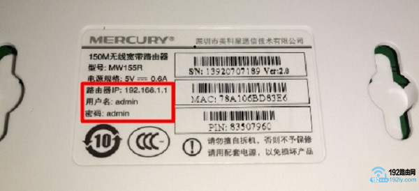 不同型号的水星无线路由器,设置网址可能不一样。大家可以在水星路由器底部标签上,查看自己的这台水星路由器的设置网址,以标签上给出的为准,如下图所示。
