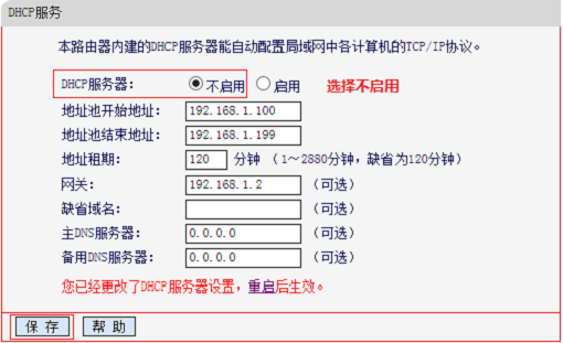 在水星MW450R的设置界面,点击“DHCP服务器”——>“DHCP服务设置”——>“DHCP服务器”选择:不启用——>点击“保存”并重启路由器。