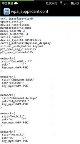 手机上查看保存的WiFi密码,需要用到专用的软件,安卓手机的话,还需要取得ROOT权限,才可以查看的。具体的查看方法,这里不再详细介绍了,大家可以点击下面的教程查看: