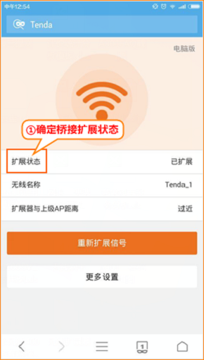 确定腾达扩展器中的扩展状态为“已扩展” ,此时表示设置成功。