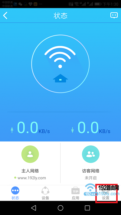 1、手机重新连接TL-WR886N的无线信号后,再次打开手机上的管理APP,然后点击“设置”选项打开