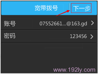 填写完宽带账号、宽带密码后,请仔细检查,确保账号和密码是正确的,然后点击“下一步”。
