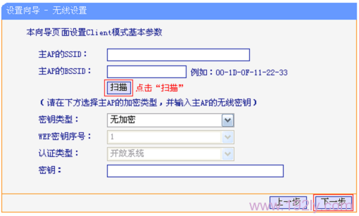 5、输入无线密钥:“密钥类型”请选择与主路由器的类型一致——>“密钥”请输入需要连接的无线信号的