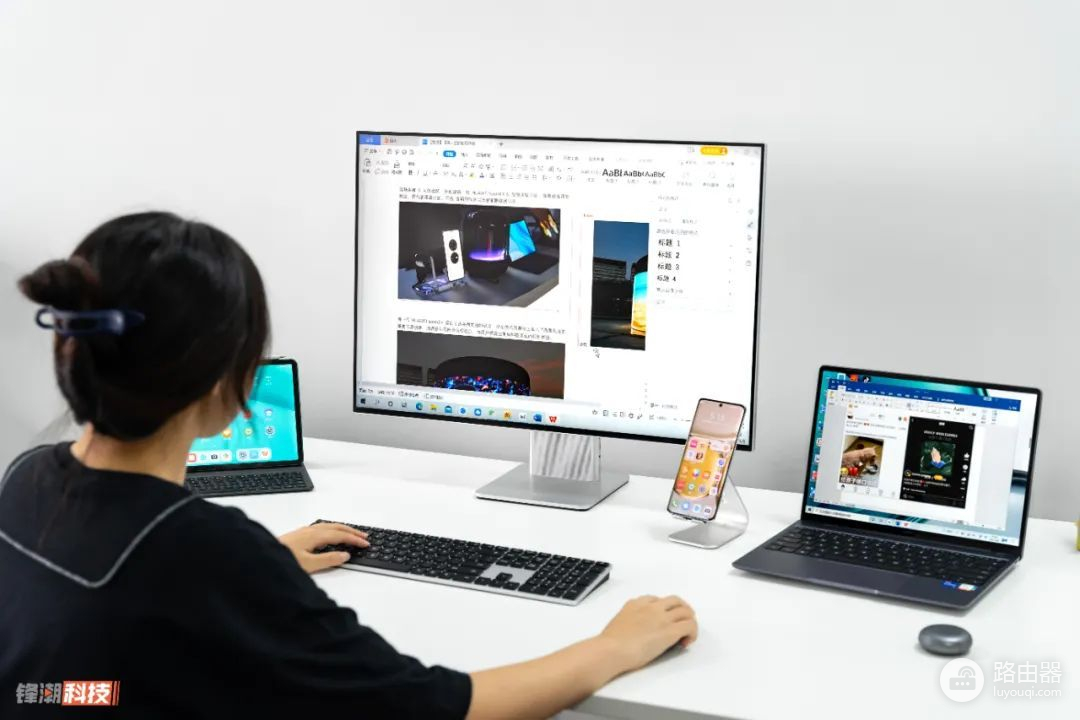 机哥今天还找来华为MateView显示器,发现华为的「智慧办公自由创造,无界沟通」的概念,确实是很猛。