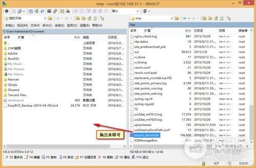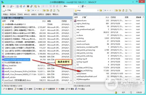 同样用WinSCP把xiaomi_uboot.bin文件拷贝出来作为备份,因为小编之前说了,tmp目录是个临时存放处,当系统重启时临时文件就会丢失。