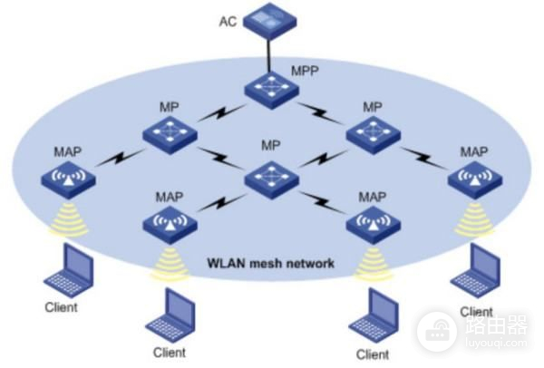 mesh组网原理是Mesh客户端通过无线连接的方式接入到无线Mesh路由器,无线Mesh路由器以多跳互连的形式,形成相对稳定的转发网络。