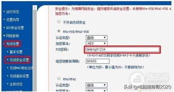 (注:每个路由器的管理页面都不尽相同,有些无线路由器并不会直接把wifi密码显示在主页上,这就要我们找到“无线网线安全”,才可以修改了。)