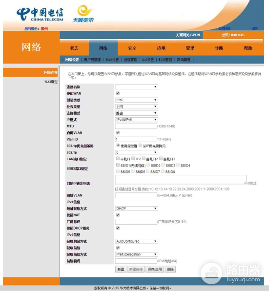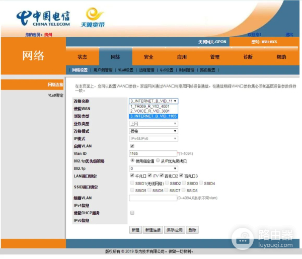 6.一般光猫有4个Vlan,管理,语音,IPTV和上网,我这里不用IPTV,所以IPTV已经删了。