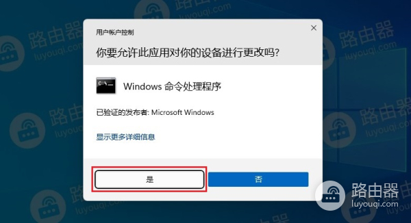 2、在运行中输入“cmd”,然后按“Ctrl+Shift+Enter”以管理员身份打开命令提示符。并在用户帐户控制界面,选择“是”。