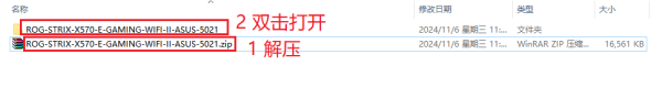 8、在 服务支持 -> 驱动程序和工具软件 -> BIOS &固件 下面,下载了 ROG STRIX X570-E GAMING 对应最新版本的BIOS。然后按照步骤4中的方法,对BIOS文件时行改名复制到U盘中。