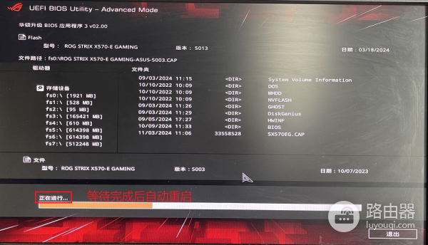 9、再次重启刷BIOS,BIOS成功识别,并且成功刷入主板。