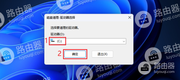2、在弹出的窗口中选择系统磁盘“C:”,然后点击“确定”。