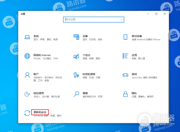 2、在Windows设置下,选择“更新和安全”。
