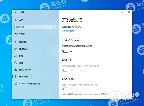 win10系统中的开发者选项在哪里