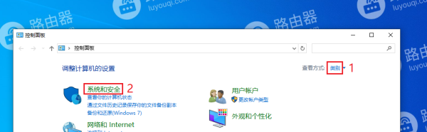 2、将查看方式设置为“类别”,然后选择“系统和安全”。