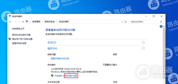 3、在系统和安全下,选择“安全的维护”。