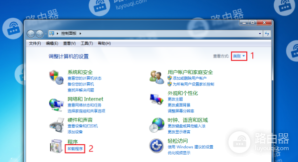 2、将查看方式设置为“类别”,然后点击“卸载程序”。