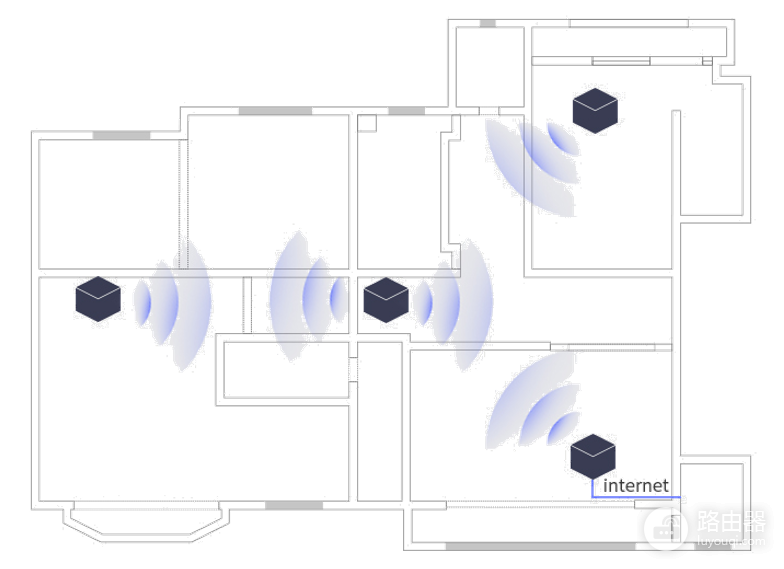 家中面积较大的情况下,特别是墙体和家具遮挡较多时,单一的路由器往往无法满足全屋无线网络的覆盖需求。如果家中布线不便,可以采用tp-link易展Mesh技术可以解决这一问题。tp-link无线Mesh技术通过将多台无线路由器自动组网,形成一个分布式的无线网络,确保整个家庭(平层、大户型、复式还是别墅)都能实现无线全覆盖。