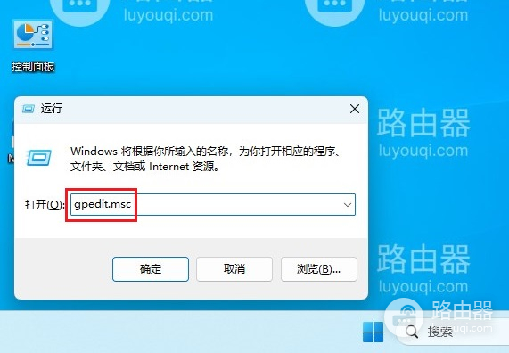 8、按快捷键“win+r”打开运行,并在运行中输入“gpedit.msc”,然后点击“确定”打开本地组策略编辑器。