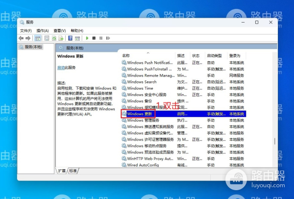 2、在服务窗口的右侧,找到并双击“Windows 更新”。