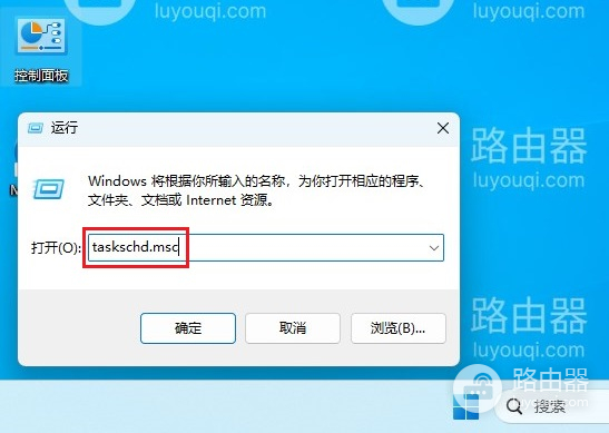 5、按快捷键“win+r”打开运行,并在运行中输入“taskschd.msc”,然后点击“确定”打开任务计划程序。