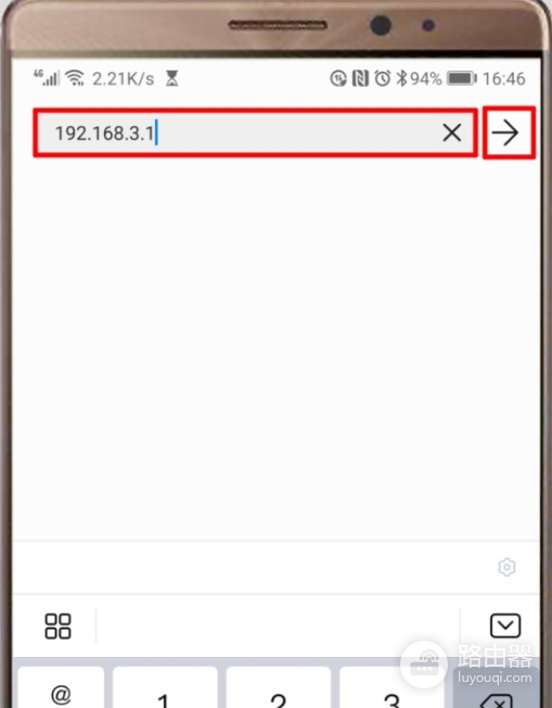 打开手机浏览器,在地址栏中输入192.168.3.1,然后点击“前往”访问页面。如果地址栏中已有内容,请先清空后再输入。