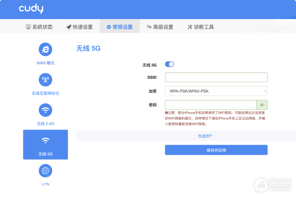 2.“2.4G和5G分开设”:2.4G穿墙好,适合远距离;5G速度快,适合近处用。给它们设不同名字和密码,用起来更顺手。