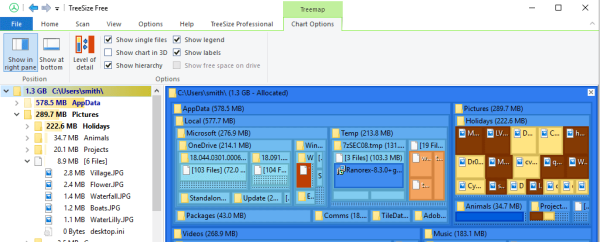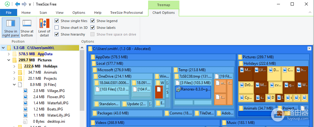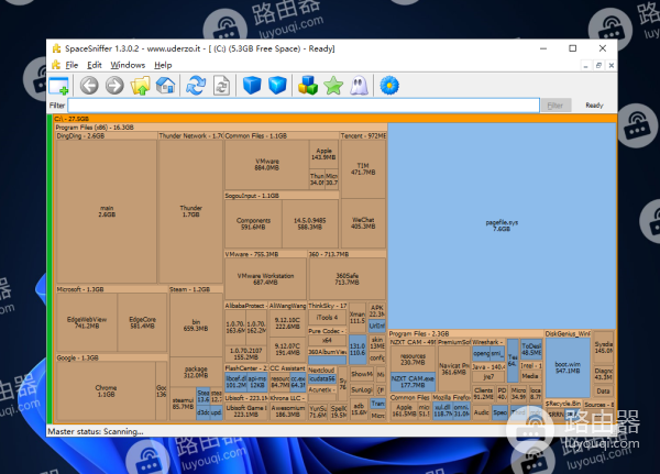 2、使用磁盘空间分析工具,如 SpaceSniffer、TreeSize Free,查看C盘中那些目录较大,删除较大且无用的文件或目录。