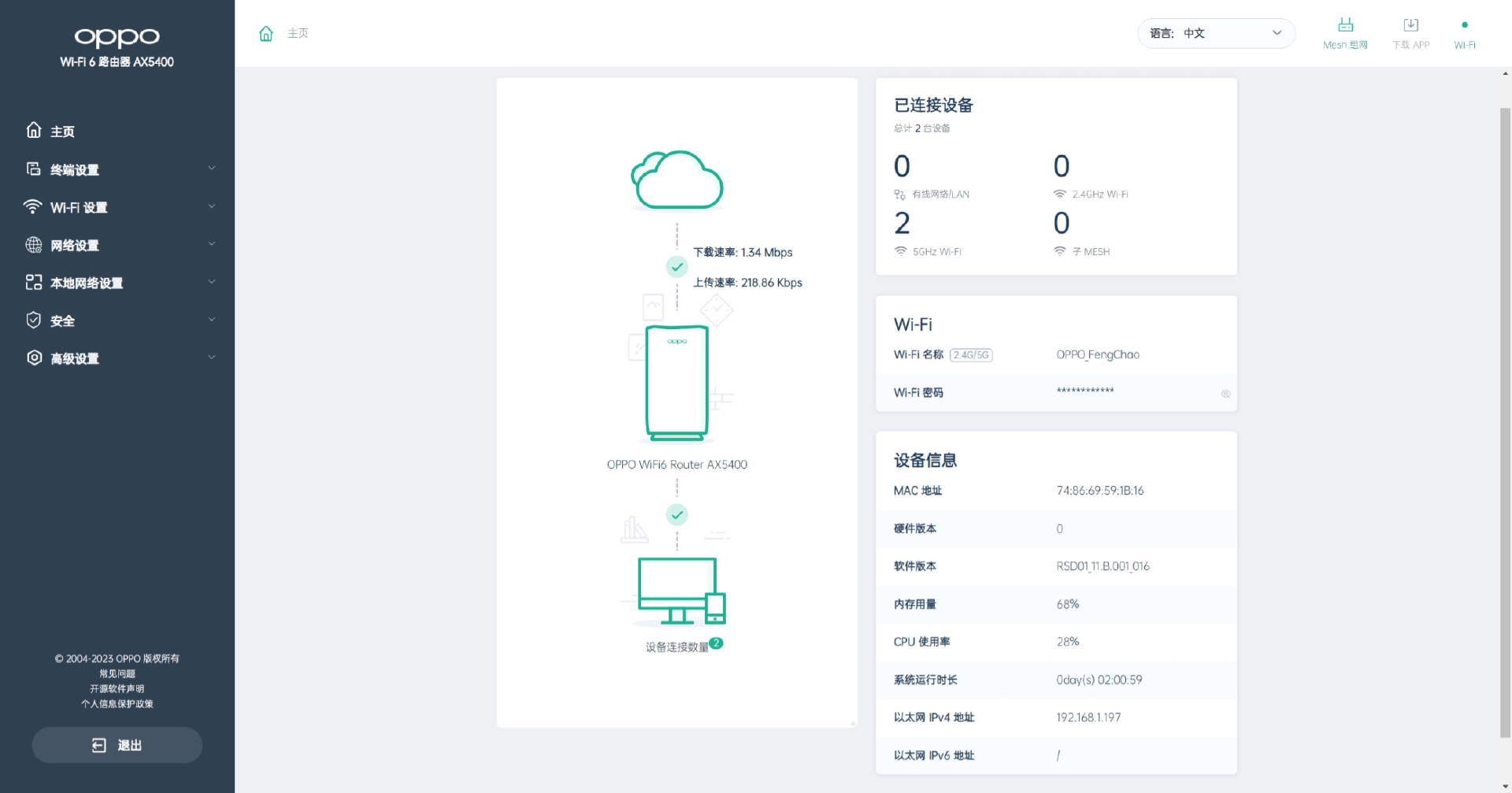 OPPO Wi-Fi 6路由器AX5400的默认管理网址是:oppowifi.com