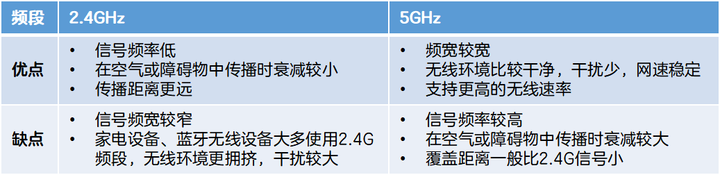 2.4G 和 5G Wi-Fi 各自的优缺点: