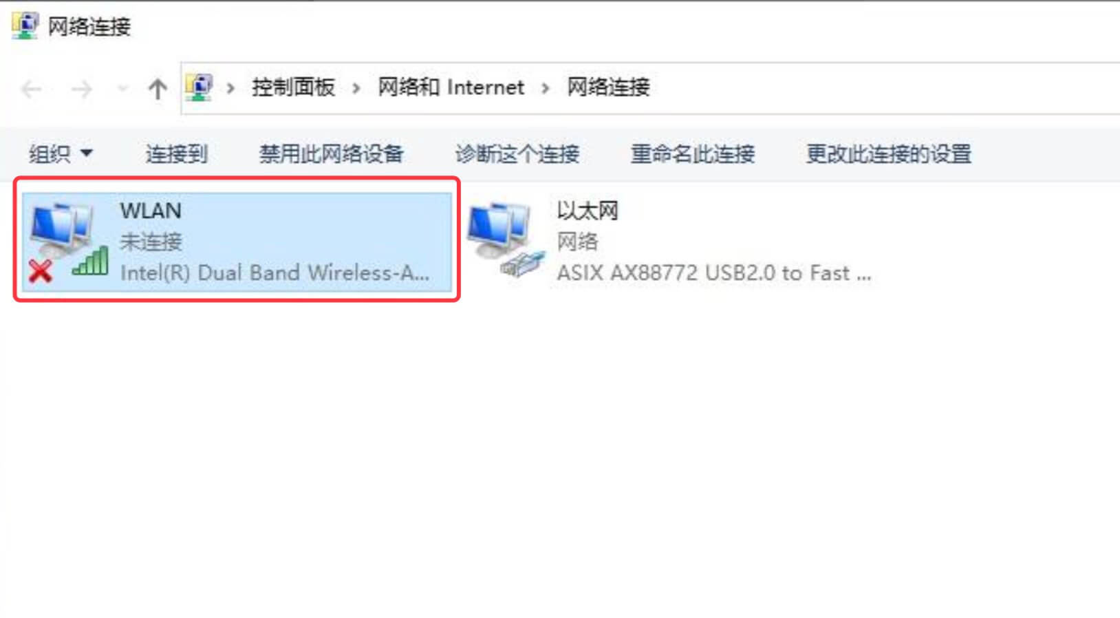 在设置-网络和Internet,点击高级网络设置下的更改适配器选项,进入界面。查看WLAN是否被禁用,如果被禁用,右键,选择启用。